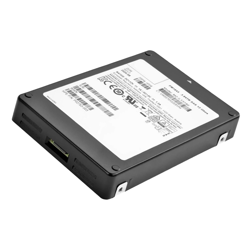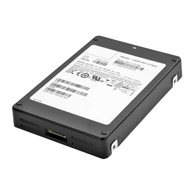 The Samsung PM1643 solid-state drive (SSD) with 3.84TB storage capacity is built for enterprise-grade applications. It is designed for robust data handling and high-speed performance, featuring a SAS 12Gbps interface and advanced V-NAND technology.