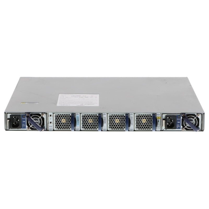 The switch supports dual hot-swappable power supplies, enhancing uptime and ensuring continuous network operation. In mission-critical data centers, power redundancy is essential to avoid downtime caused by component failures. The hot-swappable design enables maintenance without service interruption.