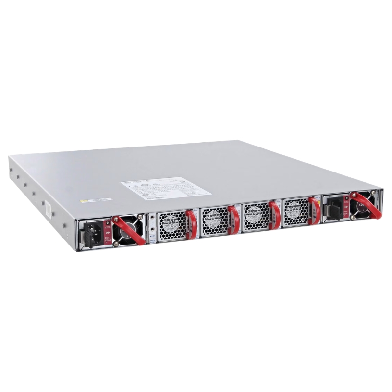 The front-to-back airflow configuration ensures that cool air is drawn in from the front of the chassis and expelled through the rear. This airflow direction is aligned with standard hot aisle/cold aisle containment systems in enterprise and hyperscale data centers. By maintaining consistent airflow patterns, the switch reduces thermal hotspots, enhances component longevity, and contributes to overall energy efficiency within rack deployments.