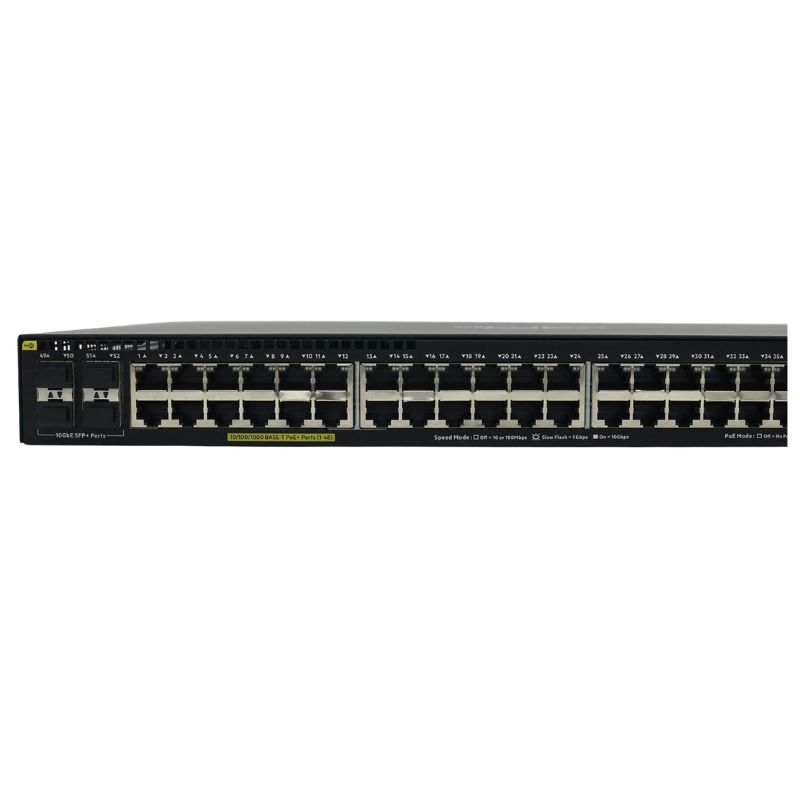 - Ports: 48 x 10/100/1000 (PoE+) + 4 x Gigabit SFP (uplink)