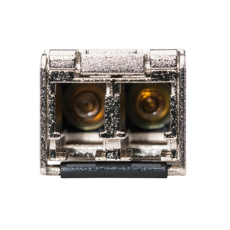 The module uses industry-standard LC optical connectors designed for secure fiber coupling and consistent optical alignment. The connector housing ensures dust protection and stable optical performance over repeated insertion cycles.