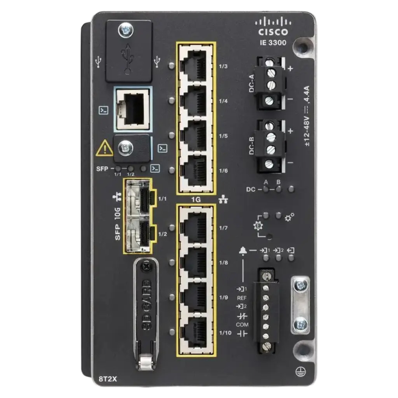 - The IE-3300-8T2X-E offers robust port options, ensuring versatile connectivity for various network devices.