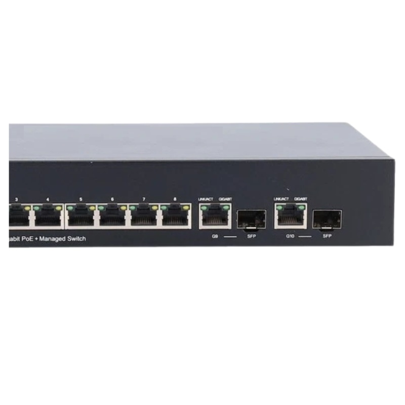 - Switch Ports: 10 (8 PoE + 2 Gigabit SFP)