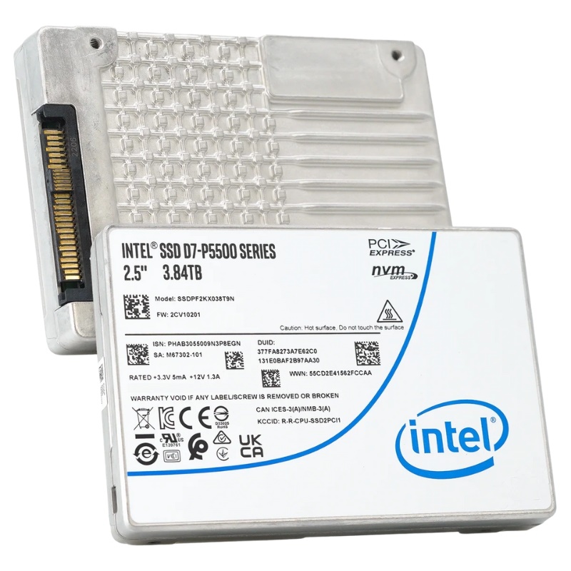 The Intel D7-P5500 3.84TB NVMe SSD features a standard 2.5-inch U.2 form factor with a 15mm z-height, allowing it to fit seamlessly into a wide range of enterprise storage systems and servers. The U.2 interface ensures compatibility with high-density server configurations, enabling data centers to scale efficiently without redesigning existing infrastructure. This design promotes easy hot-swapping capabilities, reducing downtime during upgrades or replacements. The drive’s robust aluminum enclosure enhances heat dissipation, maintaining optimal operating temperatures during intensive workloads. With its U.2 connector, the drive integrates effortlessly into systems supporting PCIe 4.0 storage devices, optimizing both performance and scalability.