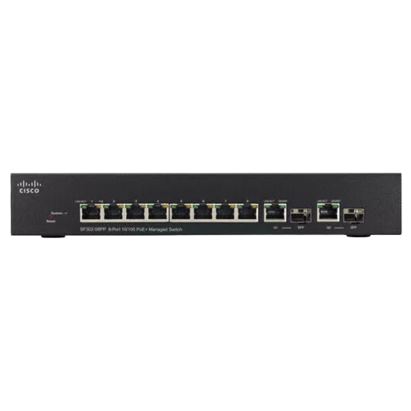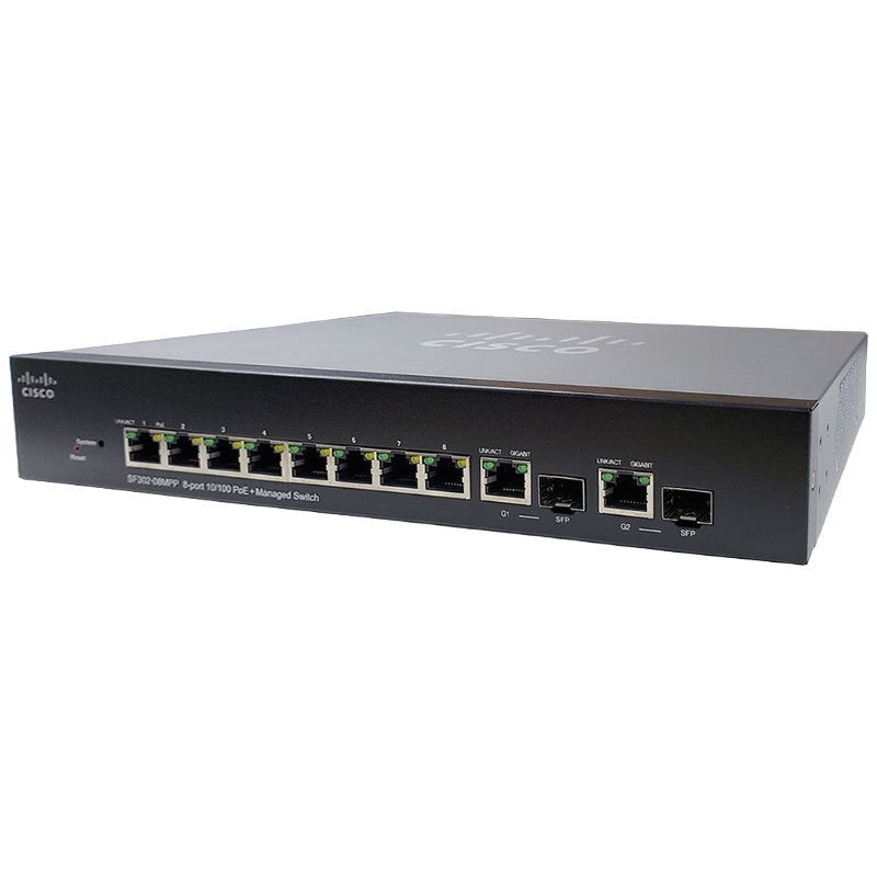- Product Name: Cisco SF302-08PP 8-Port 10/100 PoE+ Managed Switch