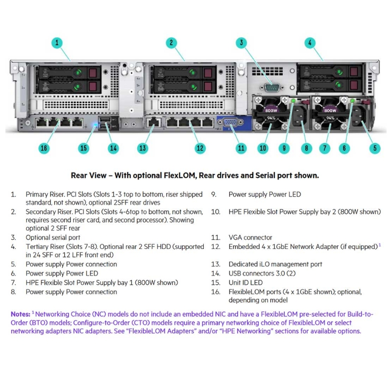 - HP iLO Interface: 1 x RJ-45 (Rear)