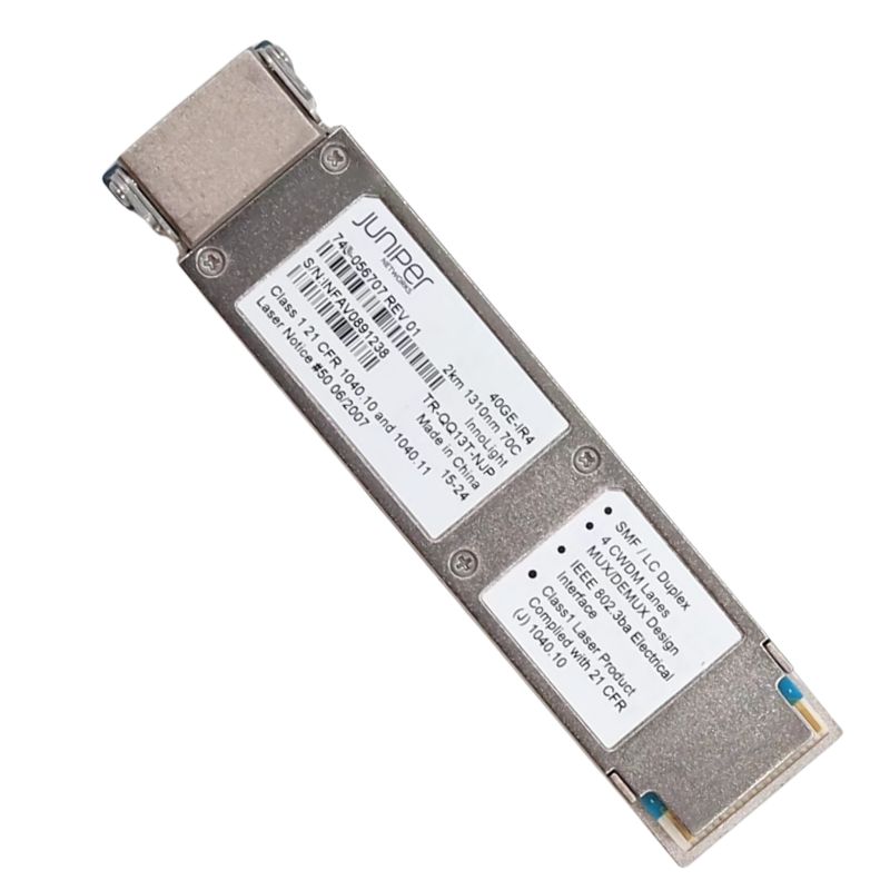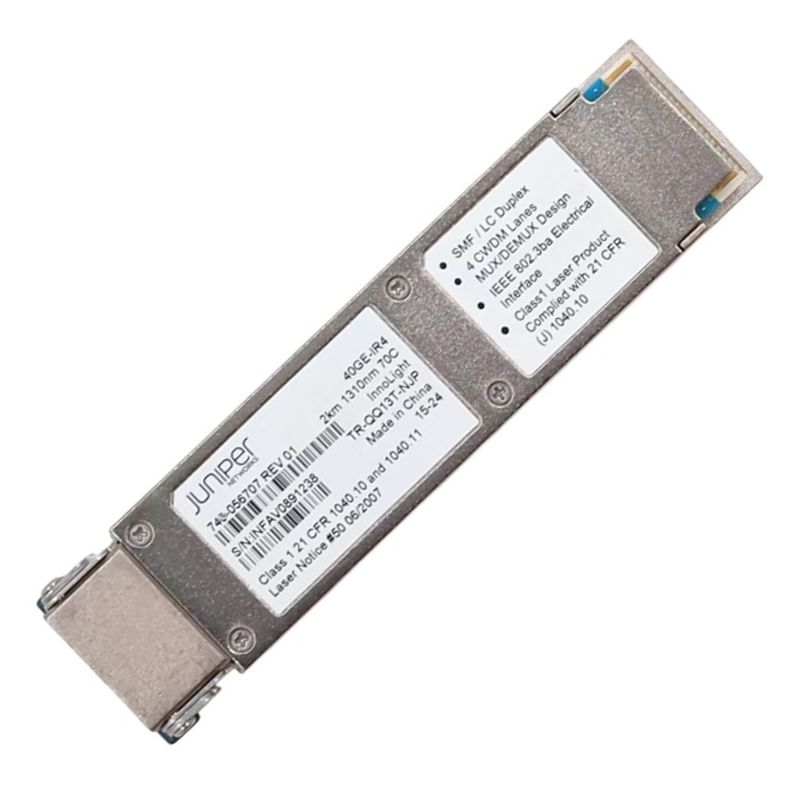 The Juniper Networks 740-056707 Qsfp+ is a high-performance optical transceiver designed for 40 Gigabit Ethernet applications. It is engineered to support long-distance data transmission over single-mode fiber (SMF) for distances of up to 1 kilometer.