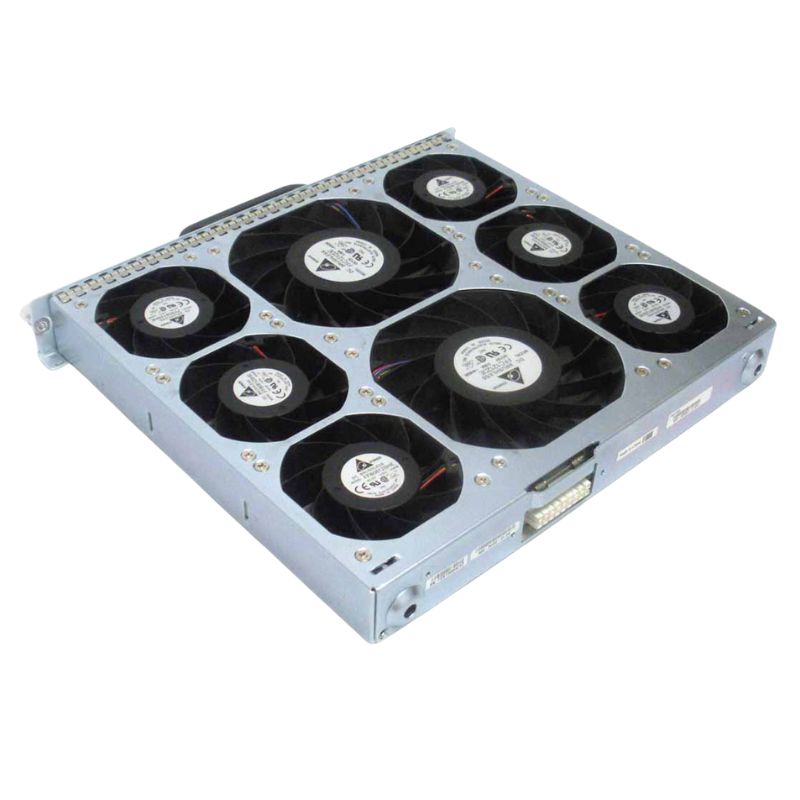 The black color of the fan tray allows it to blend into the background and have a discreet presence. This is particularly beneficial when the network infrastructure is visible to clients or visitors. The fan tray's unobtrusive appearance helps to maintain focus on the overall setup rather than drawing attention to individual components.