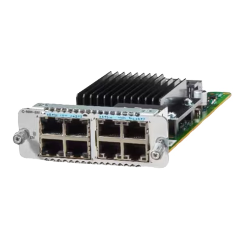 The Cisco C-NIM-8M provides eight fully functional multi-gig Ethernet ports built with RJ-45 connectors, enabling seamless copper-based network deployments. Its design focuses on performance, scalability and compatibility, delivering flexibility for evolving IT environments.