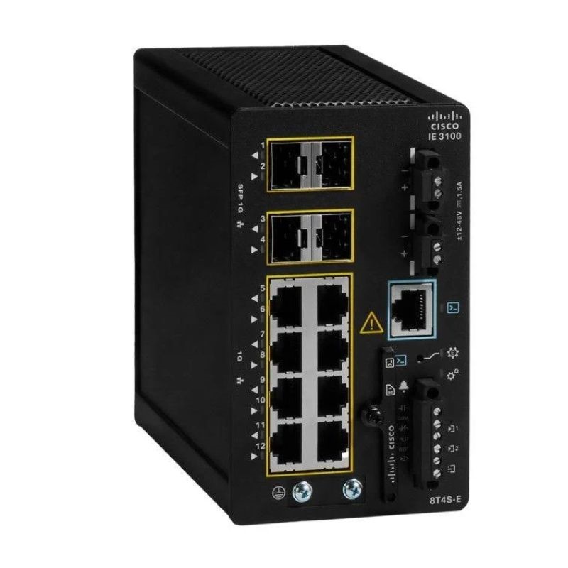 The Cisco Catalyst IE-3100-8T4S-E is an industrial-grade, din-rail mountable Gigabit Ethernet switch built for harsh environments and mission-critical networks. Engineered for resilient edge deployments, this rugged switching appliance combines eight copper Gigabit ports with four SFP fiber uplinks, Layer 3 routing capabilities, and low power consumption. Use this product page copy to highlight features, technical data, deployment scenarios, and search-friendly terms such as industrial ethernet switch, din-rail Ethernet, and Cisco Catalyst IE3100.