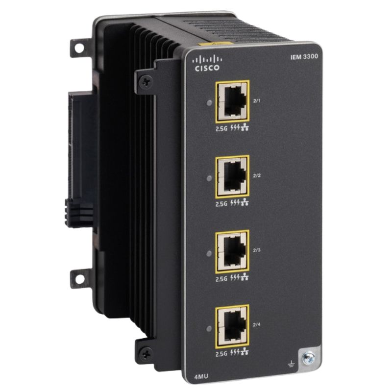 The Cisco IEM-3300-4MU Expansion Module is equipped with 4 ports, providing users with multiple connectivity options and facilitating network expansion in industrial environments.