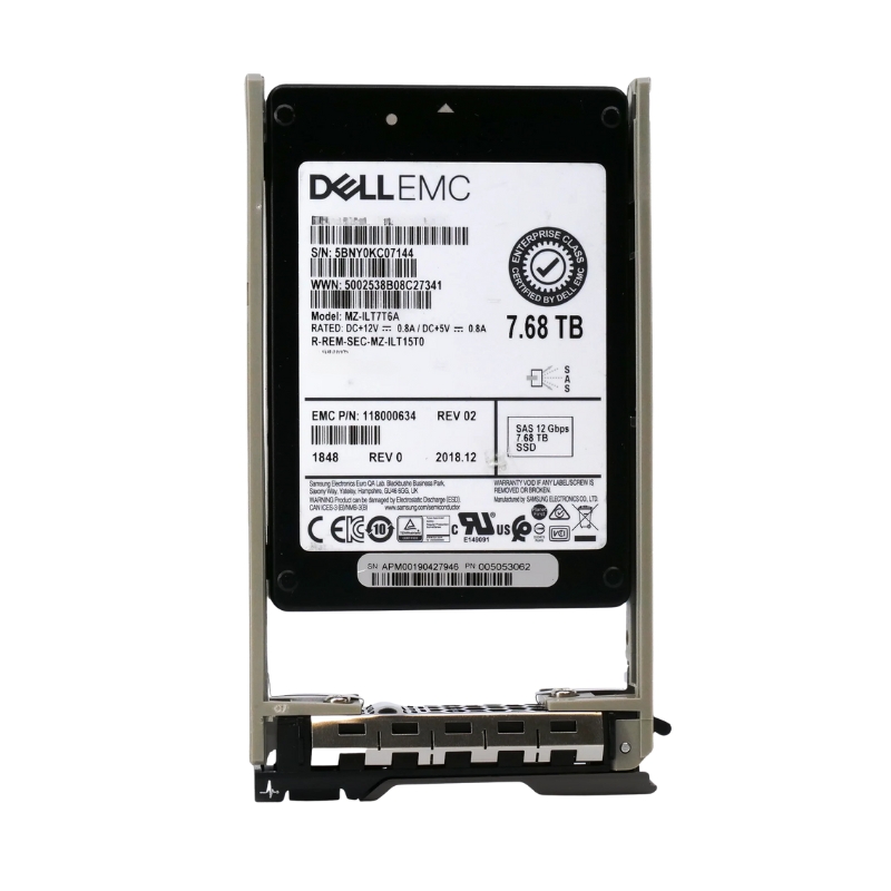 The Dell 345-BBCM 7.68TB SAS 12Gbps solid-state drive is a high-capacity, read-intensive storage solution engineered for modern PowerEdge servers. Designed with efficient TLC V-NAND and a durable 1 DWPD endurance rating, this 2.5-inch hot-plug SSD offers exceptional reliability and rapid data accessibility for enterprise-level workloads.