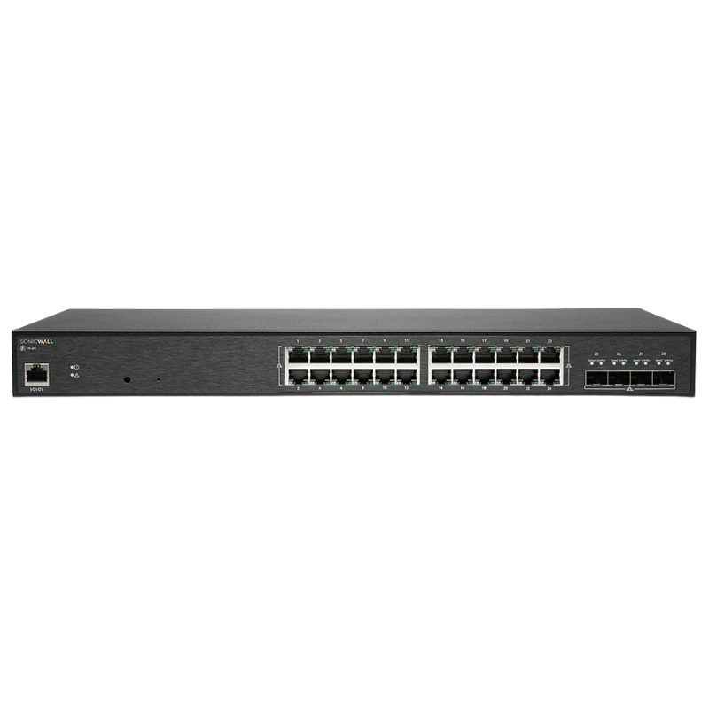 - Port Configuration: 24 x 10/100/1000Base-T RJ-45 interfaces paired with 4 x 10GBase-X SFP+ uplinks
