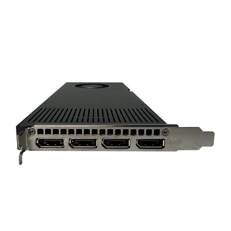 The HGP0F RTX A4000 is equipped with four DisplayPort 1.4 outputs, each capable of driving displays with resolutions up to 8K at 60Hz. This comprehensive display connectivity enables professionals to create expansive multi-monitor workstations for enhanced productivity. The DisplayPort 1.4 specification supports Display Stream Compression (DSC) 1.2a, which allows for high-resolution, high-refresh-rate displays without visual quality degradation. This technology enables the use of 8K displays with a single cable or multiple 4K displays from a single card.