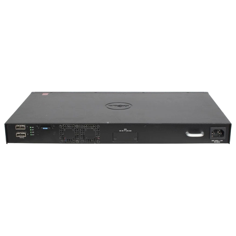 The Dell N2048P Switch comes equipped with 2 SFP (Small Form-Factor Pluggable) ports, providing users with additional connectivity options. These ports allow for the integration of fiber optic cables, enabling high-speed and long-distance data transmission.