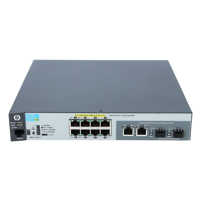 - Port Configuration: 8 x 10/100 (POE+) + 2 x combo Gigabit Ethernet/Gigabit SFP