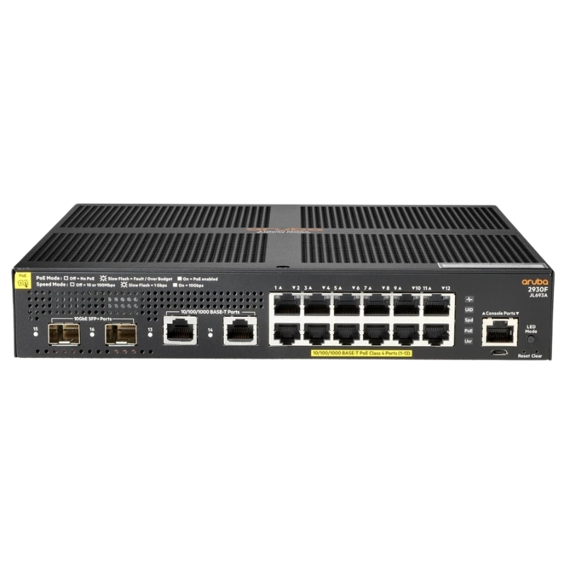 HPE JL693-61021 Aruba 2930f 12G PoE+ 139W 2G/2SFP+ 12-Port Managed Network Switch. Factory-Sealed New in Original Box (FSB) with 3 Years Warranty