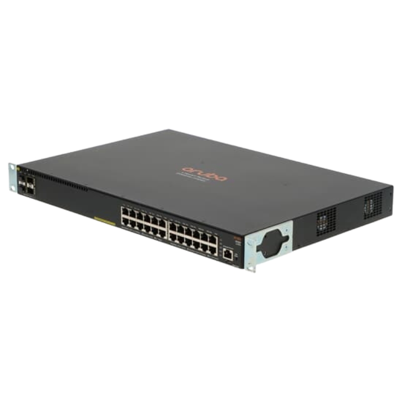 Products in this category are characterized by a fixed-port 24× 10/100/1000BASE-T access layer with integrated PoE+ on the RJ-45 ports, plus four SFP/SFP+ capable uplinks for 1G/10G fiber or DAC connections. They are managed switches with Layer 3 capabilities (including static routing, RIP and Access OSPF) and are designed for stacking to create logical single-switch domains for simplicity and resiliency. The platform emphasizes ease of deployment (Zero Touch Provisioning), strong QoS, and integration with Aruba management and policy tools for unified wired-and-wireless control.