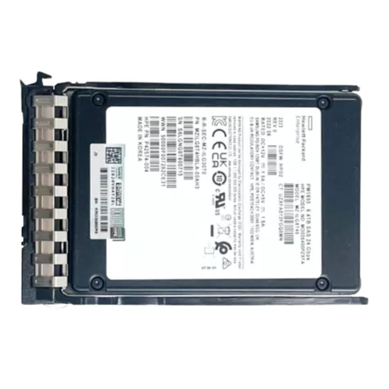 The drive utilizes a 24Gb/s SAS interface implemented in a 2.5-inch SFF form factor and is supplied in an HPE Smart Carrier (SC) hot-plug tray for easy installation and removal from HPE ProLiant chassis. The 24G SAS link provides a clear upgrade path where servers and controllers support the newer SAS-4 specification, while retaining backward compatibility with 12Gb/s SAS ecosystems—meaning the same drive can operate in many existing server fleets without requiring immediate wholesale controller upgrades. For data centers planning phased infrastructure upgrades, this backwards compatibility reduces risk and allows incremental performance gains.