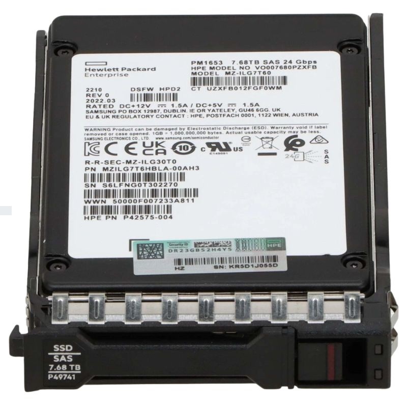 The HPE P49041-B21 7.68TB SFF 2.5-inch SAS-24Gbps Read Intensive BC MV Solid State Drive with Tray represents a critical component in the enterprise-level data storage landscape. Engineered to deliver high-capacity, high-performance, and reliability under read-intensive workloads, this drive is tailored for environments that demand consistent speed, endurance, and energy efficiency. With its 24Gbps SAS interface and compact 2.5-inch small form factor, the P49041-B21 is optimized for use in modern HPE ProLiant and Synergy server infrastructures.