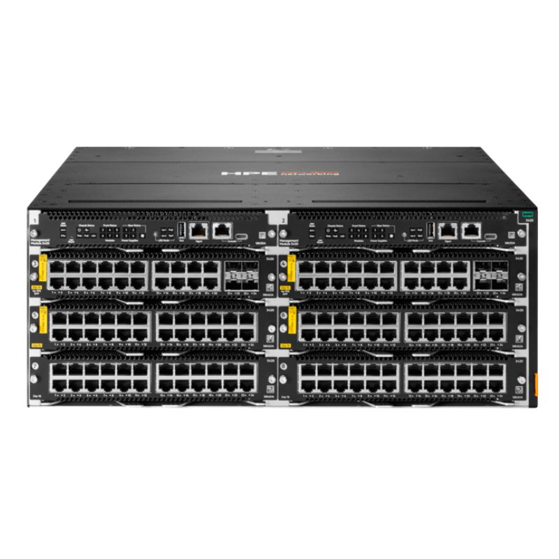 When integrated within the Aruba CX 5420 chassis, the module benefits from redundant power supplies and system-level resiliency. This architecture minimizes downtime and supports non-stop network services.