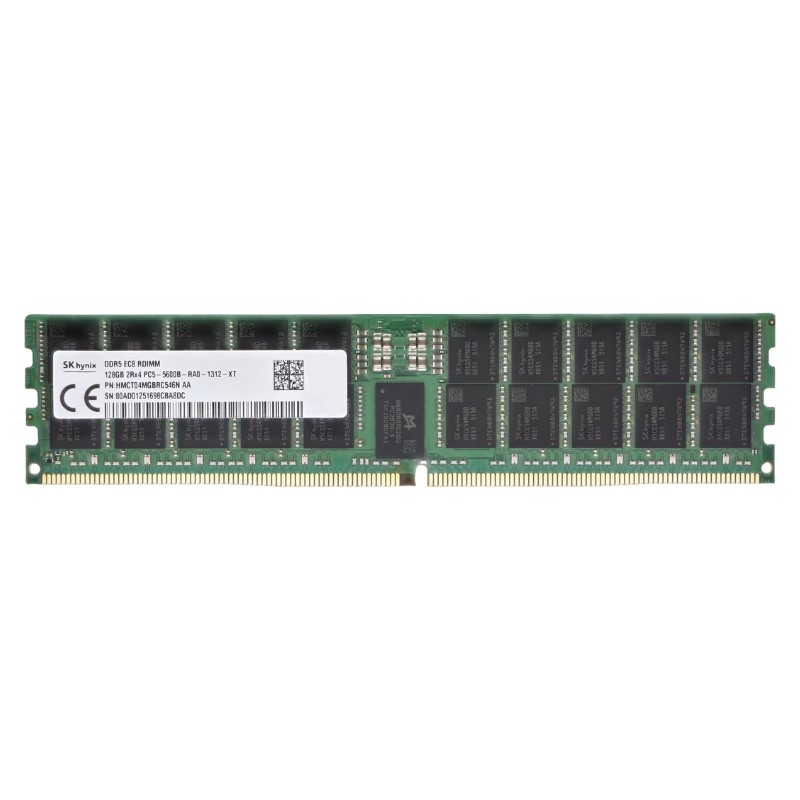 The Hynix HMCT04MGBRC546N 128GB DDR5 5600MHz ECC Registered RDIMM memory module belongs to the high-capacity enterprise DDR5 server memory category, engineered to support modern data center infrastructures that demand exceptional performance, scalability, and reliability. This category focuses on registered DDR5 memory solutions optimized for multi-socket servers, virtualization hosts, cloud computing platforms, and mission-critical enterprise applications. By combining next-generation DDR5 architecture with enterprise-class error correction and registered signal buffering, this memory module category addresses the evolving requirements of high-density and high-bandwidth server environments.DDR5 RDIMM memory modules represent a substantial advancement over previous DDR4 generations by delivering higher transfer rates, improved power efficiency, and increased memory density per module. The Hynix HMCT04MGBRC546N exemplifies these improvements with its 5600MHz operating speed, PC5-44800 bandwidth rating, and 128GB capacity. This category is specifically designed for servers that require consistent performance under sustained workloads, stable operation in fully populated DIMM configurations, and long-term reliability across continuous operation cycles.