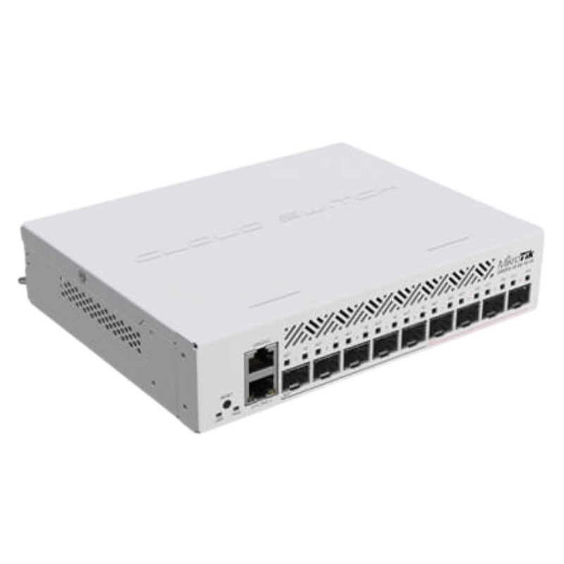 It sits between the smaller CRS305-1G-4S+IN (4x SFP+, 1x 1G RJ45) and the larger CRS312-4C+8XG-RM (12 port 10G, with 4 combo ports). Its key differentiator is the mix of five 10G SFP+ and four 1G SFP ports, a configuration not found in other models. This makes it uniquely suited for networks transitioning between 1G and 10G infrastructure. Unlike the CRS3xx series with 25G/100G ports, the CRS310 is firmly focused on the 10G access/aggregation tier, offering the best price-to-port ratio for this specific need.