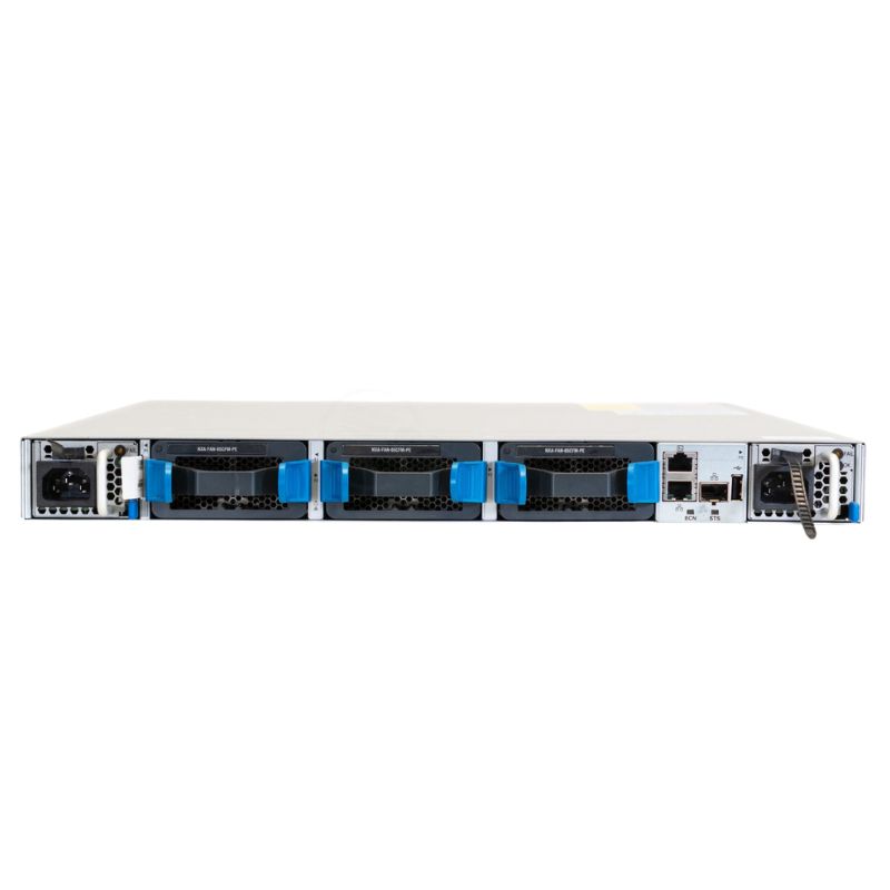 This switch is equipped with redundant, hot-swappable power supplies, ensuring continuous operation even in the event of power supply failure. The redundancy design ensures high availability, which is crucial for mission-critical environments where downtime is not an option.