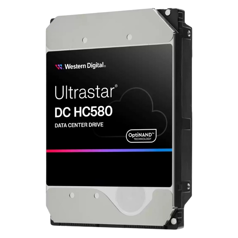 A key innovation of the Western Digital Ultrastar DC HC580 series is the implementation of OptiNAND technology, which combines traditional spinning disk storage with NAND flash to improve performance, reliability, and capacity scaling. Unlike hybrid drives, OptiNAND does not store user data in NAND, but rather uses it to enhance metadata handling, cache management, and firmware efficiency.
